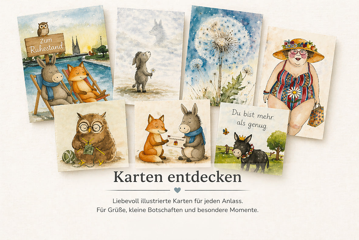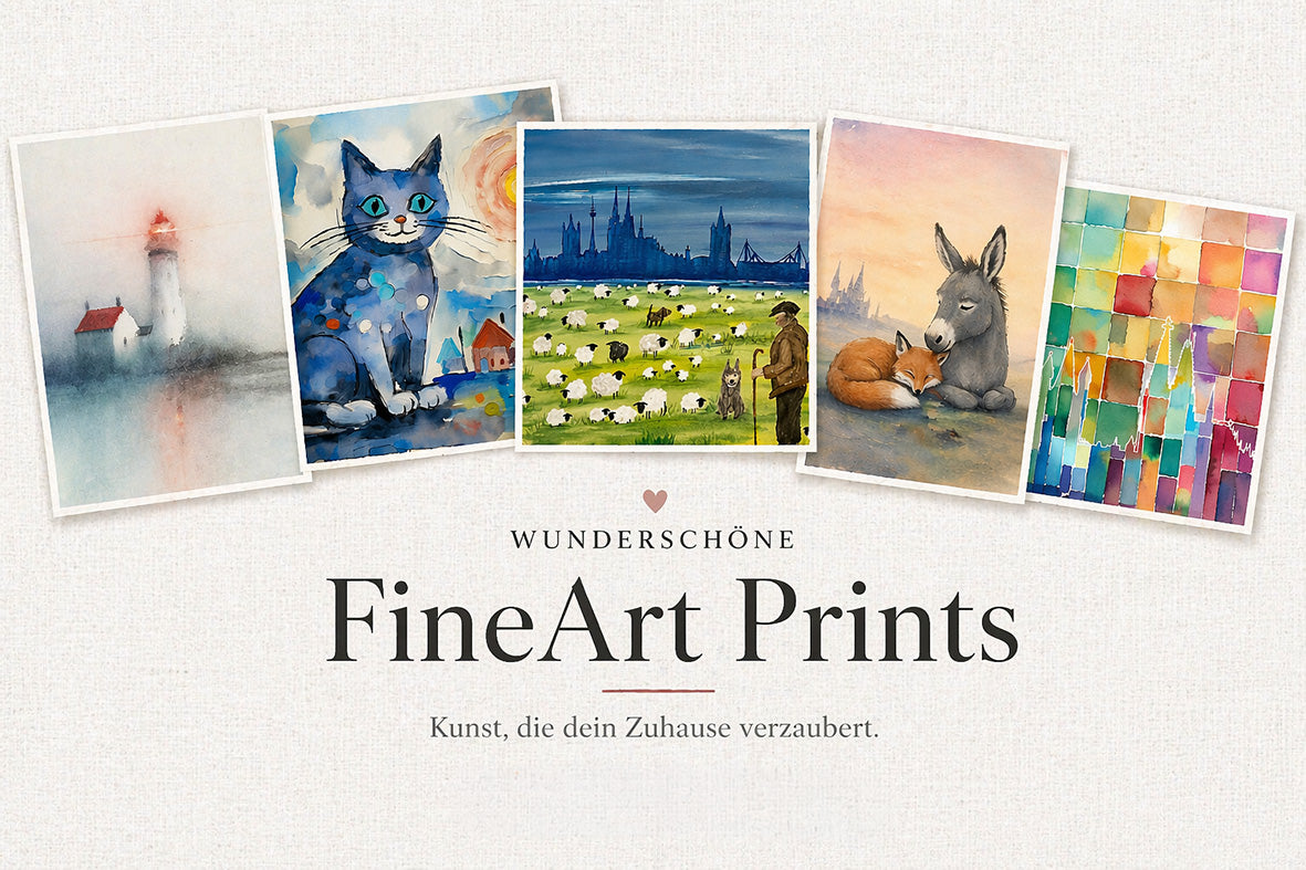 Hier findest du liebevoll gestaltete Kunstwerke, FineArt Prints und Papeterie mit Herz und Haltung. Ob Kölner Motive, tierische Begleiter, stimmungsvolle Landschaften oder maritime Szenen mit Leuchttürmen - jedes Stück erzählt eine Geschichte.