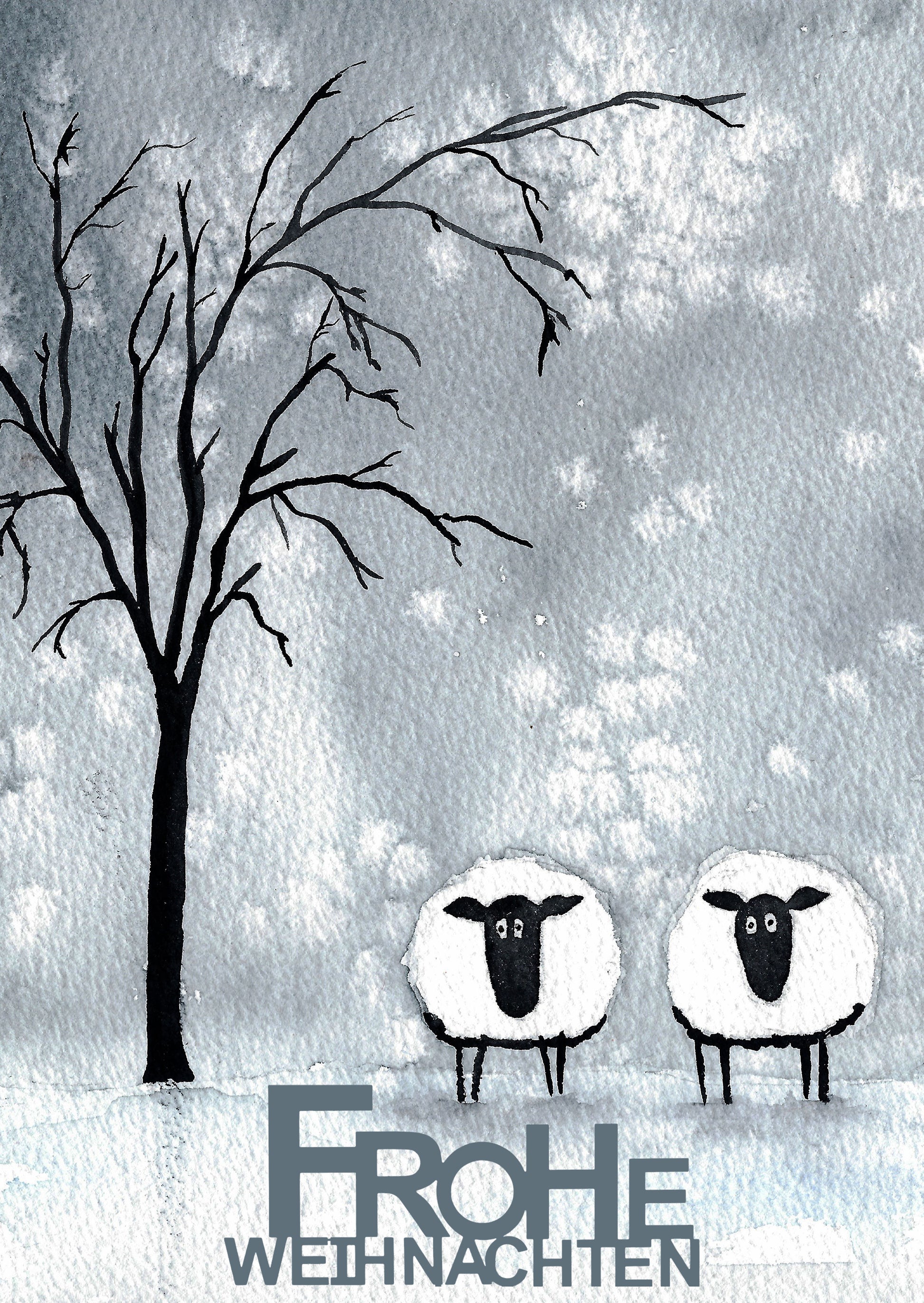 Klappkarten mit Umschlag - Schafe im Schnee und Schriftzug